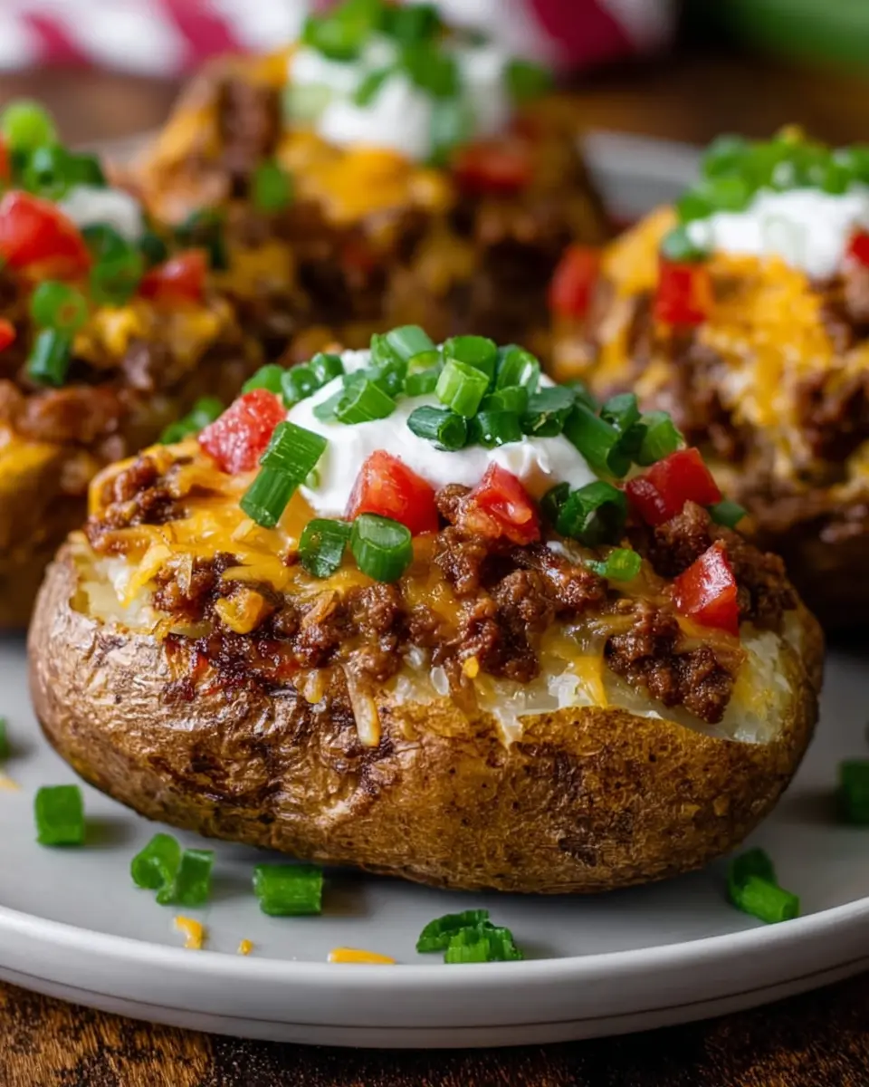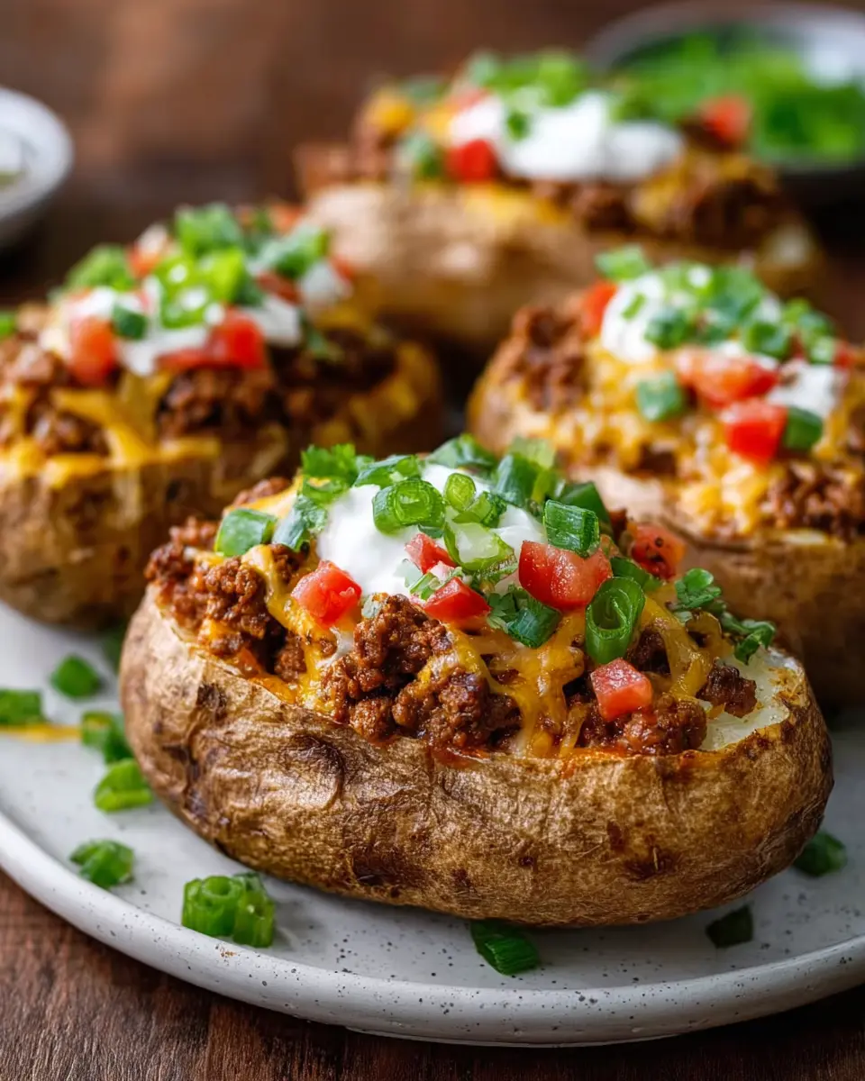 Absolutely! Taco loaded baked potatoes are perfect for meal prep. You can bake the potatoes the day before, cool them, and store them in an airtight container in the fridge. When you’re ready to serve, reheat them in the oven or microwave, then load them with your favorite toppings like seasoned beef, cheese, and veggies. This makes them a great option for busy weeknights or casual gatherings. For more meal prep tips, check out resources like EatingWell.
