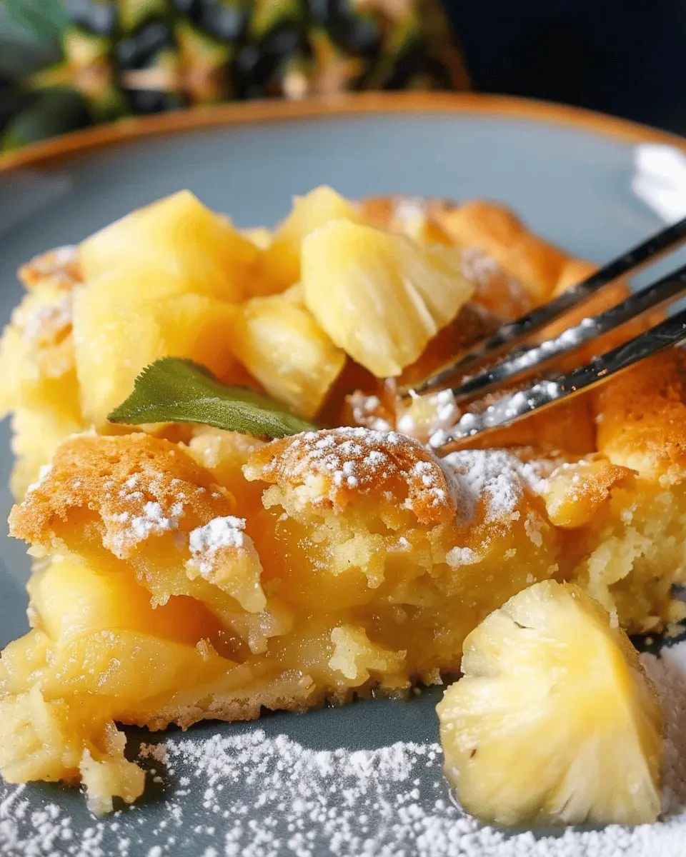 Once everything is assembled, pop it into the oven for 35-40 minutes. During this time, the delightful aroma of pineapple and cake mix will fill your kitchen, making the anticipation even sweeter.
