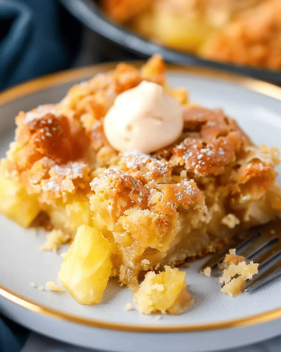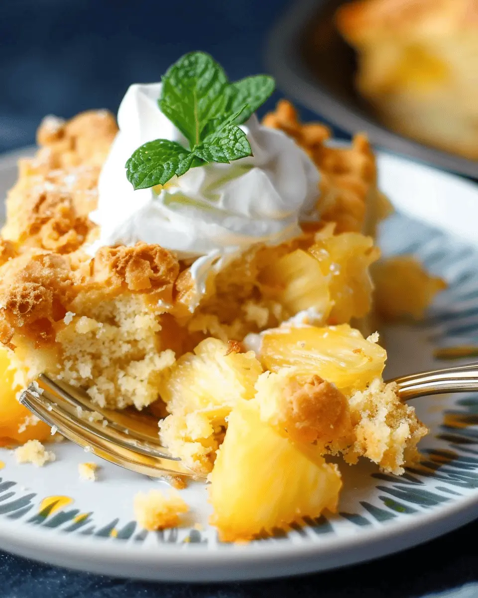 A delicious vegan dump cake made with pineapples, perfect for everyone!