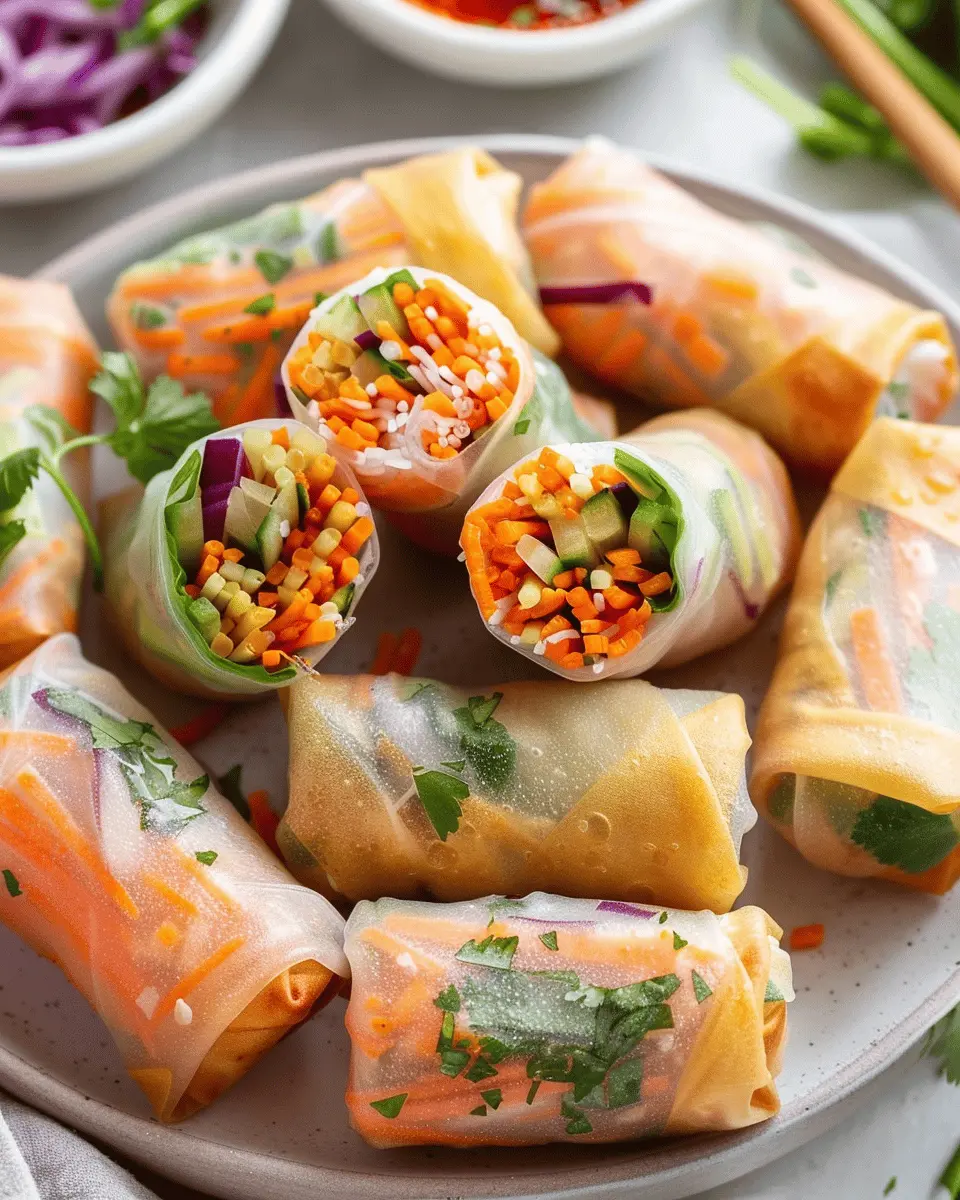 Vegetable spring rolls are also packed with vitamins and minerals. They often include colorful ingredients like carrots and bell peppers, which offer: